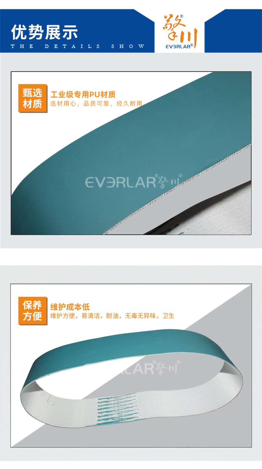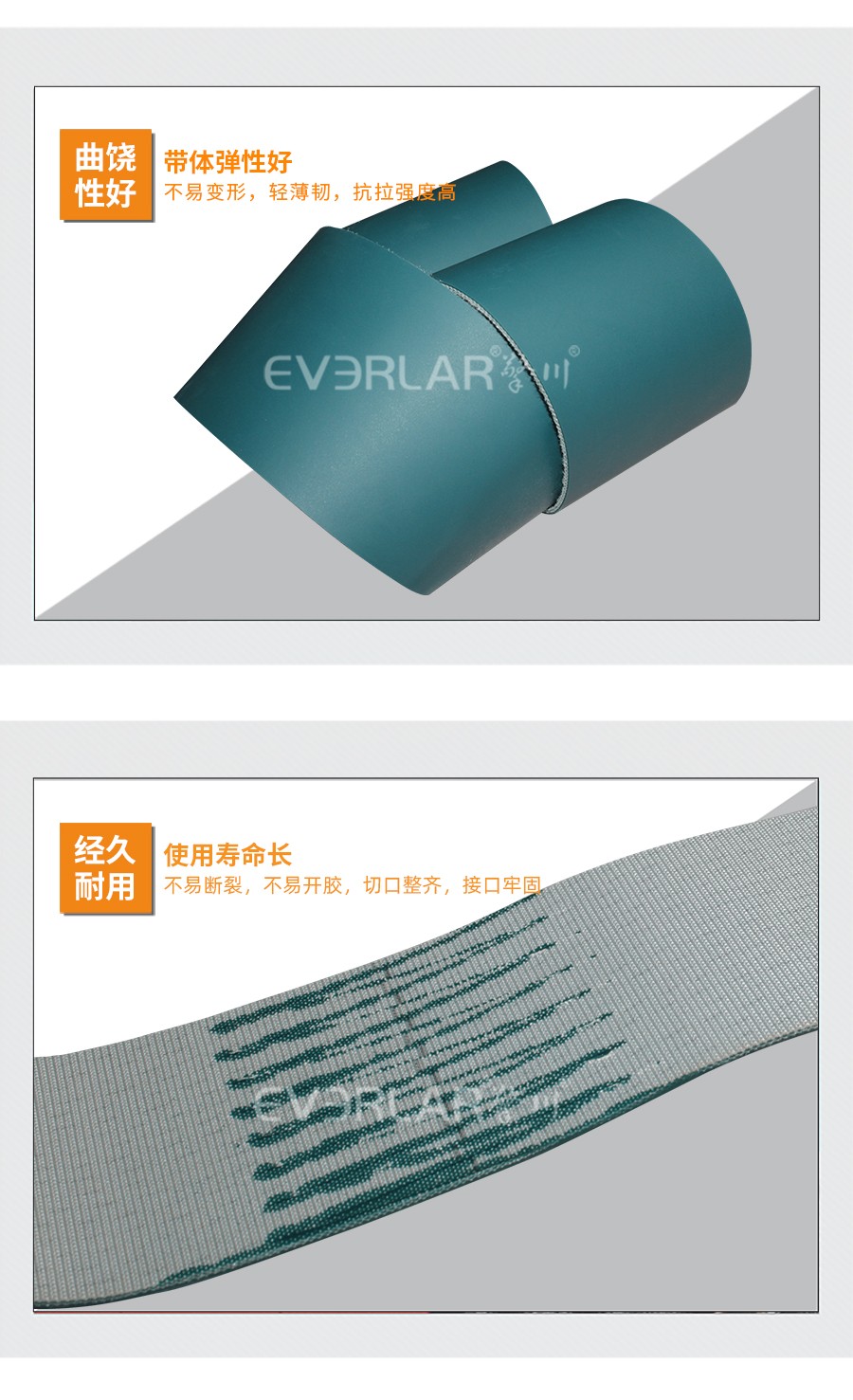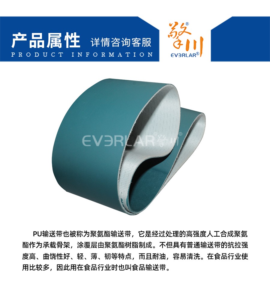 PU輸送帶也被稱為聚氨酯輸送帶,它是經過處理的高強度人工合成聚氨酯作為承載骨架,涂覆層由聚氨酯樹脂制成。不但具有普通輸送帶的抗拉強度高、曲饒性好、輕、薄、韌等特點,而且耐油,容易清洗。在食品行業使用比較多,因此用在食品行業時也叫食品輸送帶。
