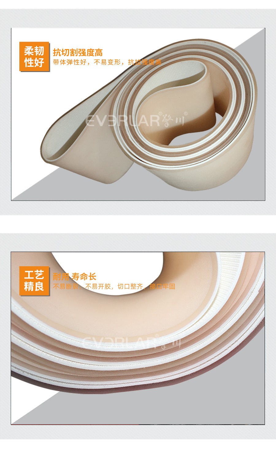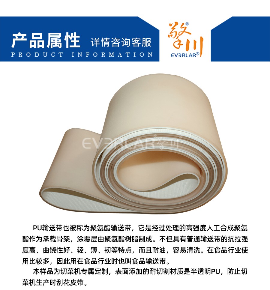 PU輸送帶也被稱為聚氨酯輸送帶,它是經(jīng)過處理的高強(qiáng)度人工合成聚氨酯作為承載骨架,涂覆層由聚氨酯樹脂制成。不但具有普通輸送帶的抗拉強(qiáng)度高、曲饒性好、輕、薄、韌等特點(diǎn),而且耐油,容易清洗。在食品行業(yè)使用比較多,因此用在食品行業(yè)時(shí)也叫食品輸送帶。