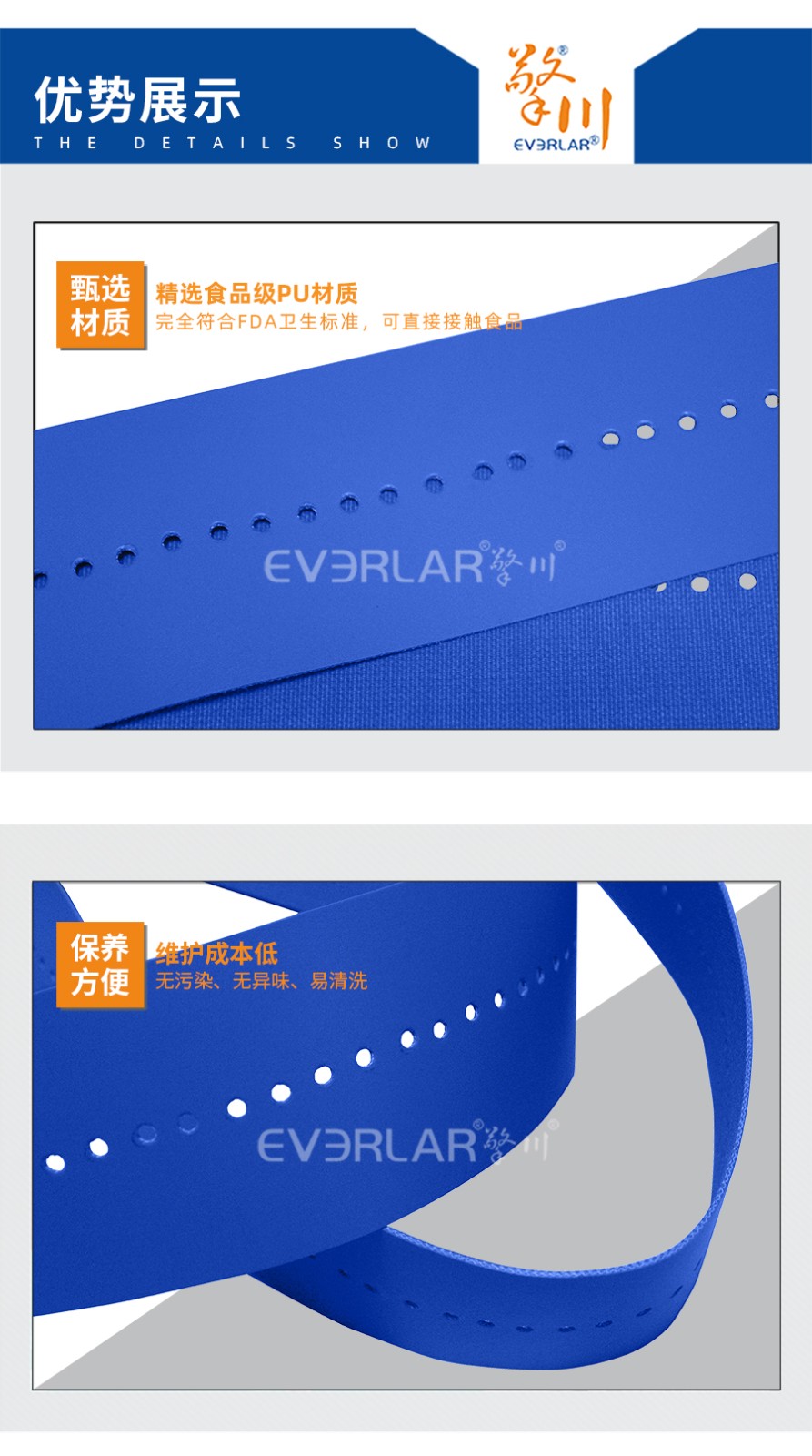 樣品名稱 | 藍色PU食品輸送帶打孔 | 接駁方式 | 齒接環帶 |
