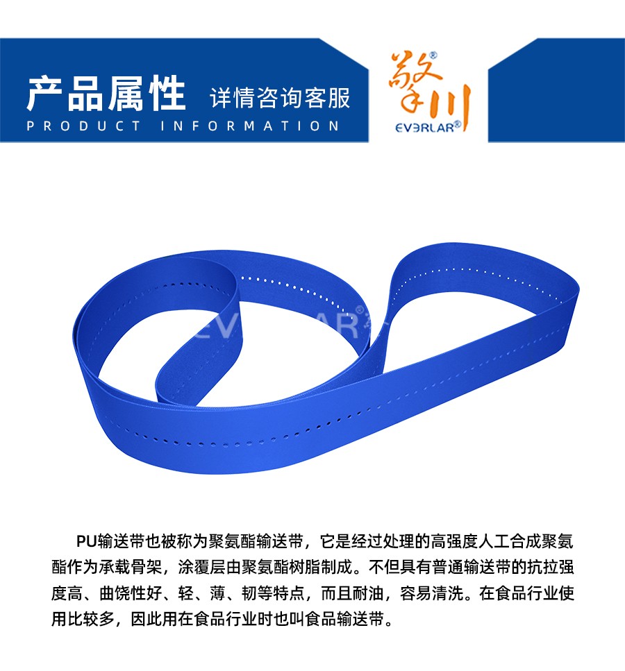 PU輸送帶也被稱為聚氨酯輸送帶,它是經過處理的高強度人工合成聚氨酯作為承載骨架,涂覆層由聚氨酯樹脂制成。不但具有普通輸送帶的抗拉強度高、曲饒性好、輕、薄、韌等特點,而且耐油,容易清洗。在食品行業使用比較多,因此用在食品行業時也叫食品輸送帶。
