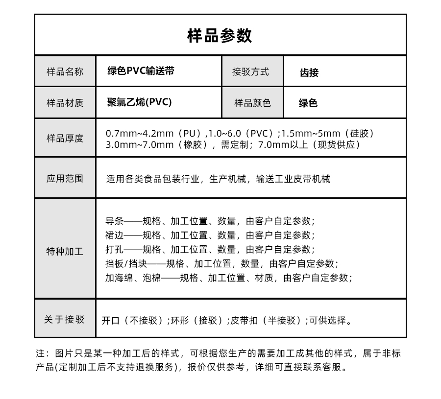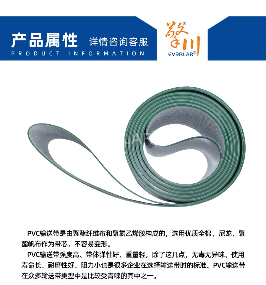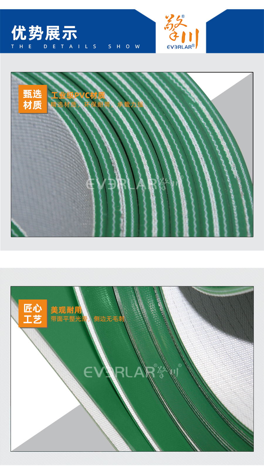 • 產品名稱:PVC輸送帶綠色運輸帶耐磨阻力小無異味有彈性