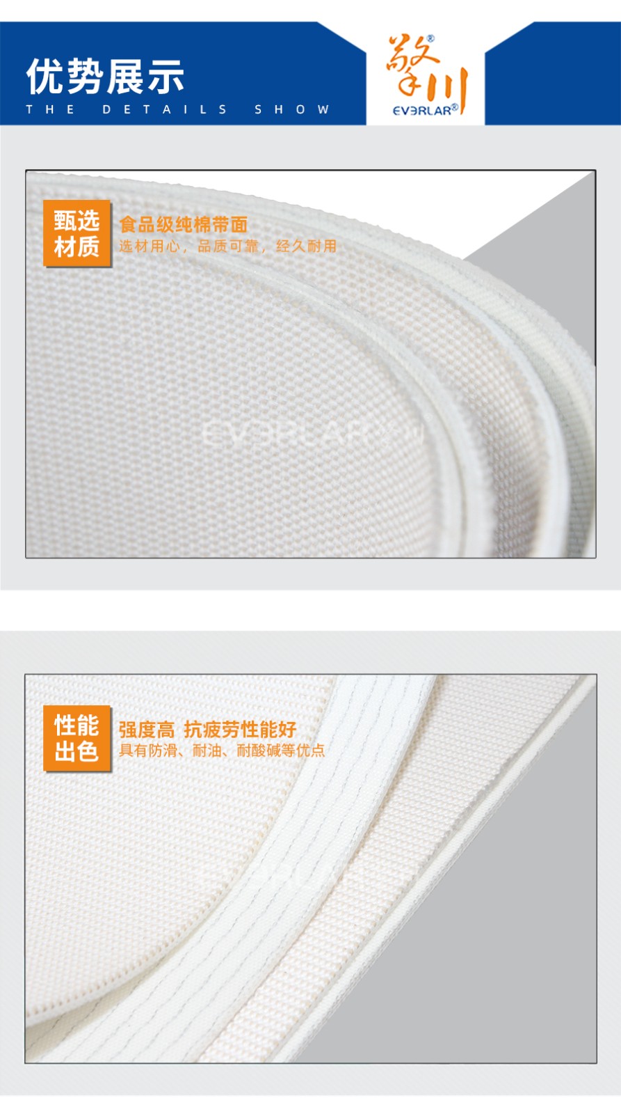 • everlar擎川定制粗面帆布白色純棉/pvc輸送帶食品級輸送帶