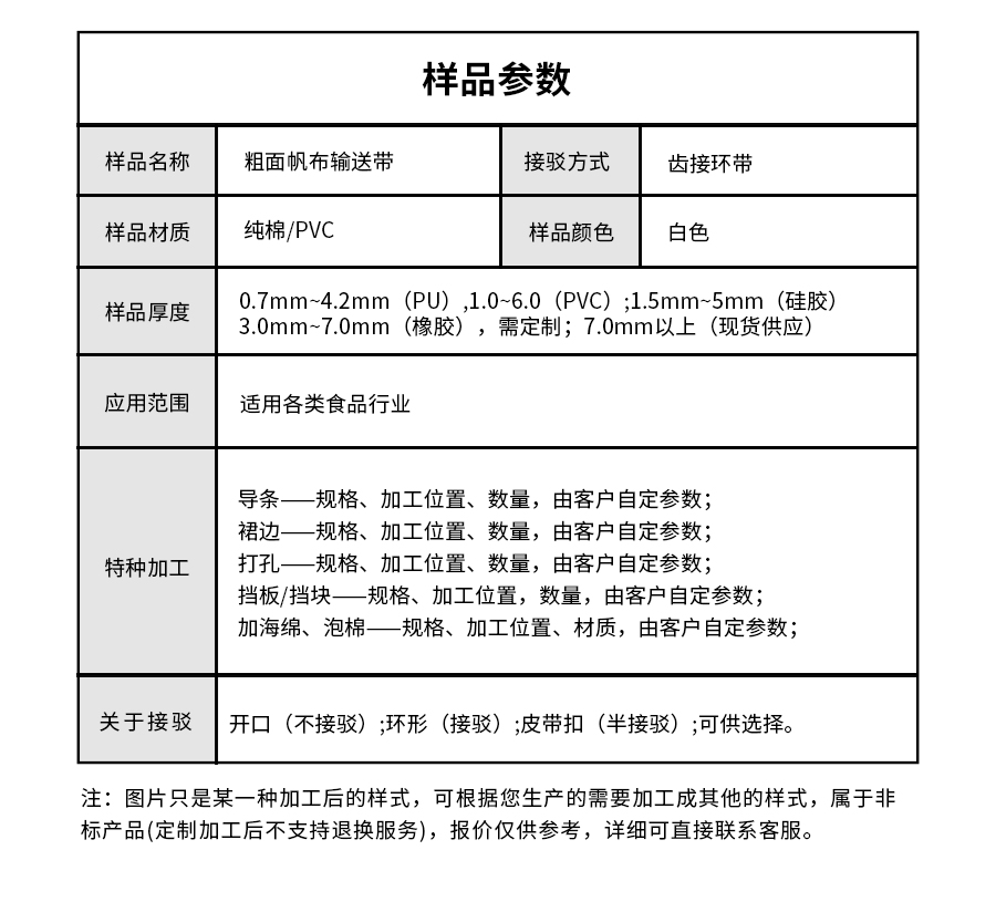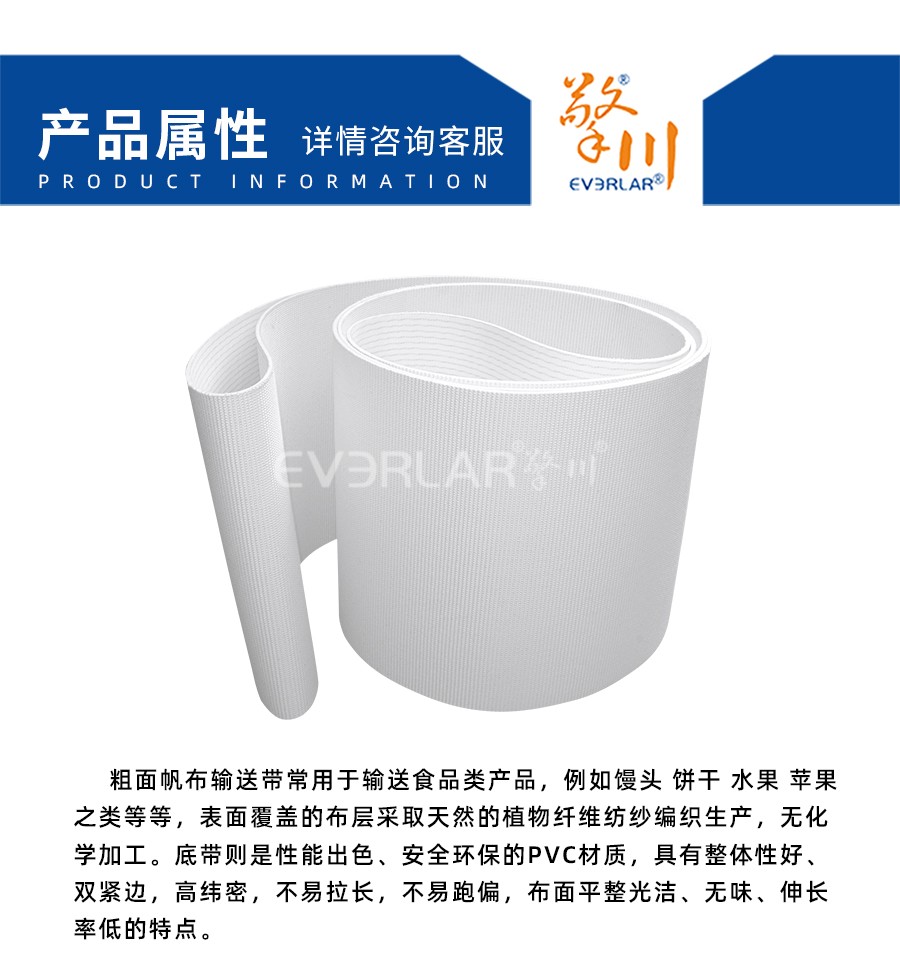 • 產品名稱:everlar擎川定制粗面帆布白色純棉/pvc輸送帶食品級輸送帶
