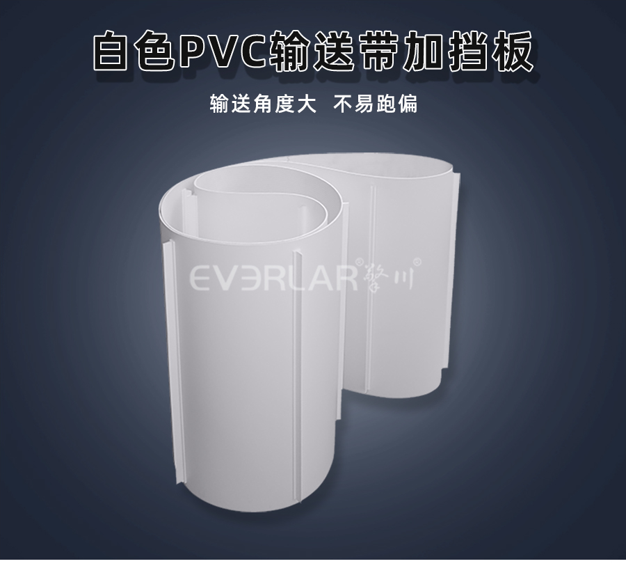 • 產品名稱:擎川everlar定制PVC輸送帶白色加擋板