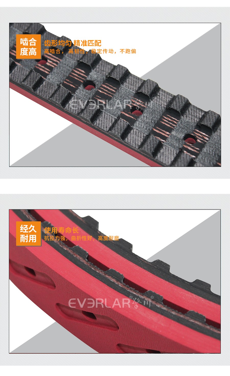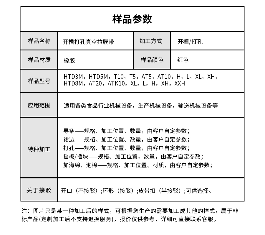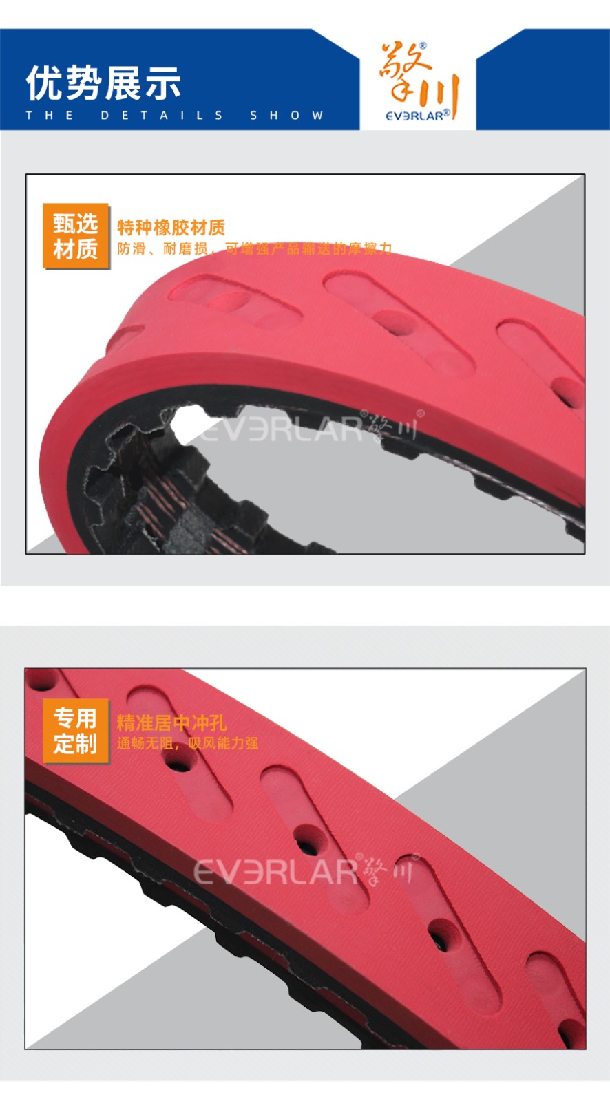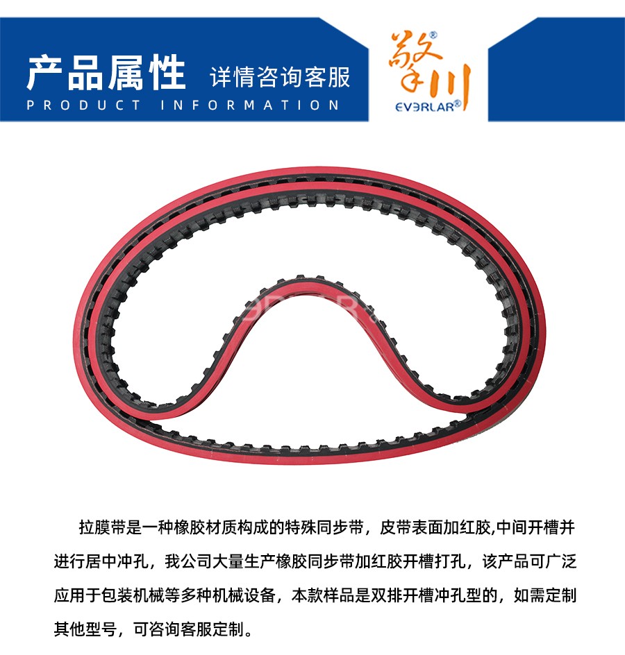 • 產品名稱:擎川everlar定制真空拉膜帶開槽打孔橡膠同步帶
