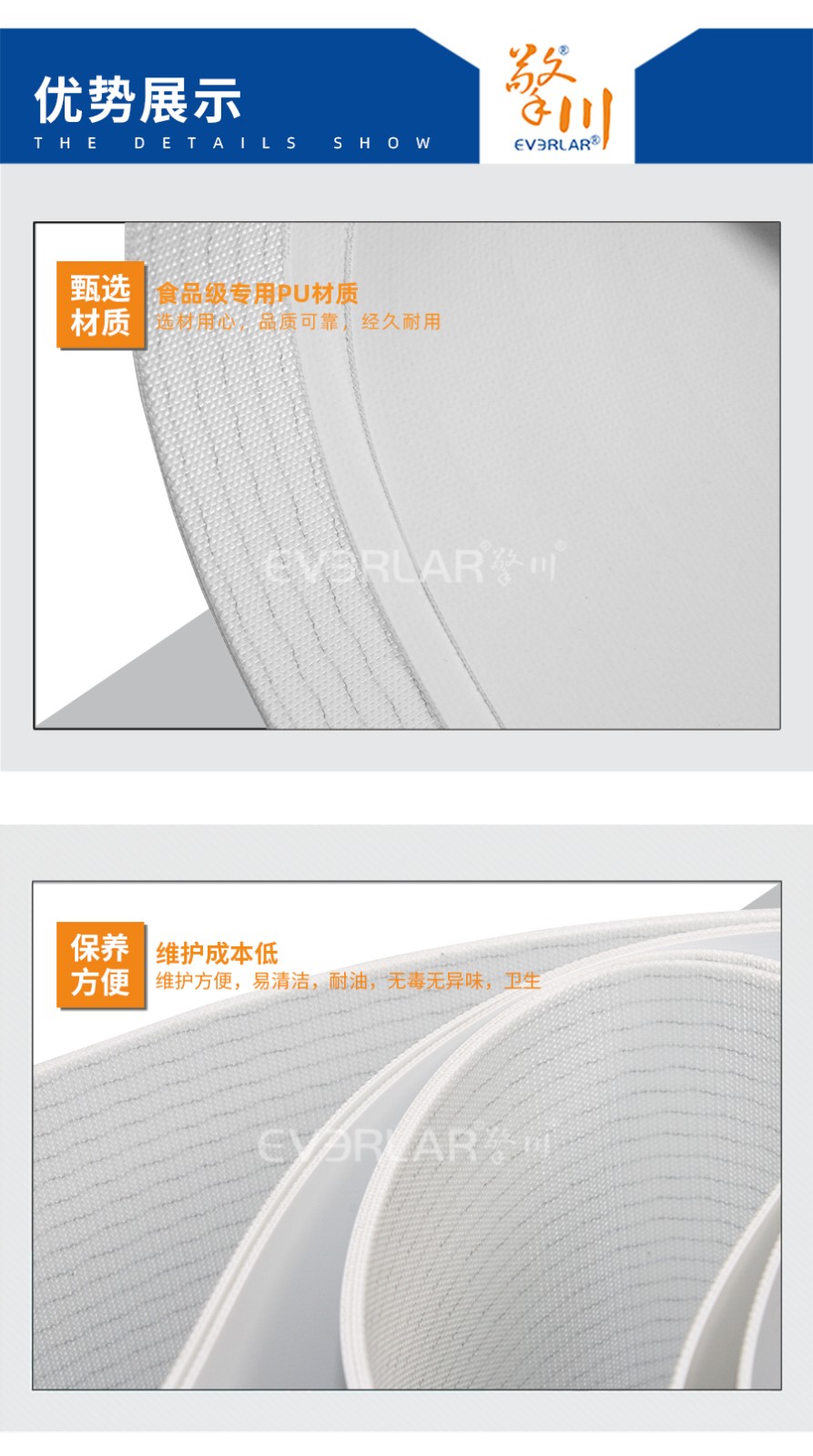 • 擎川everlar定制白色PU輸送帶