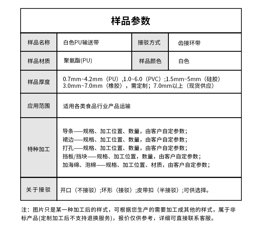 • 產品名稱:擎川everlar定制白色PU輸送帶