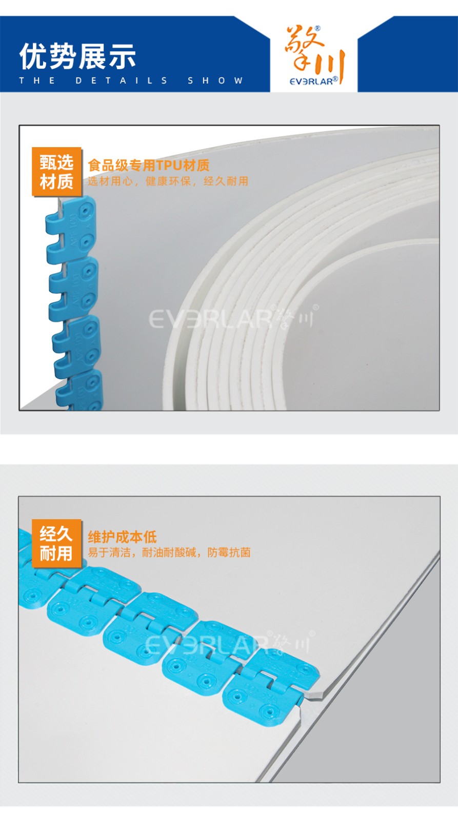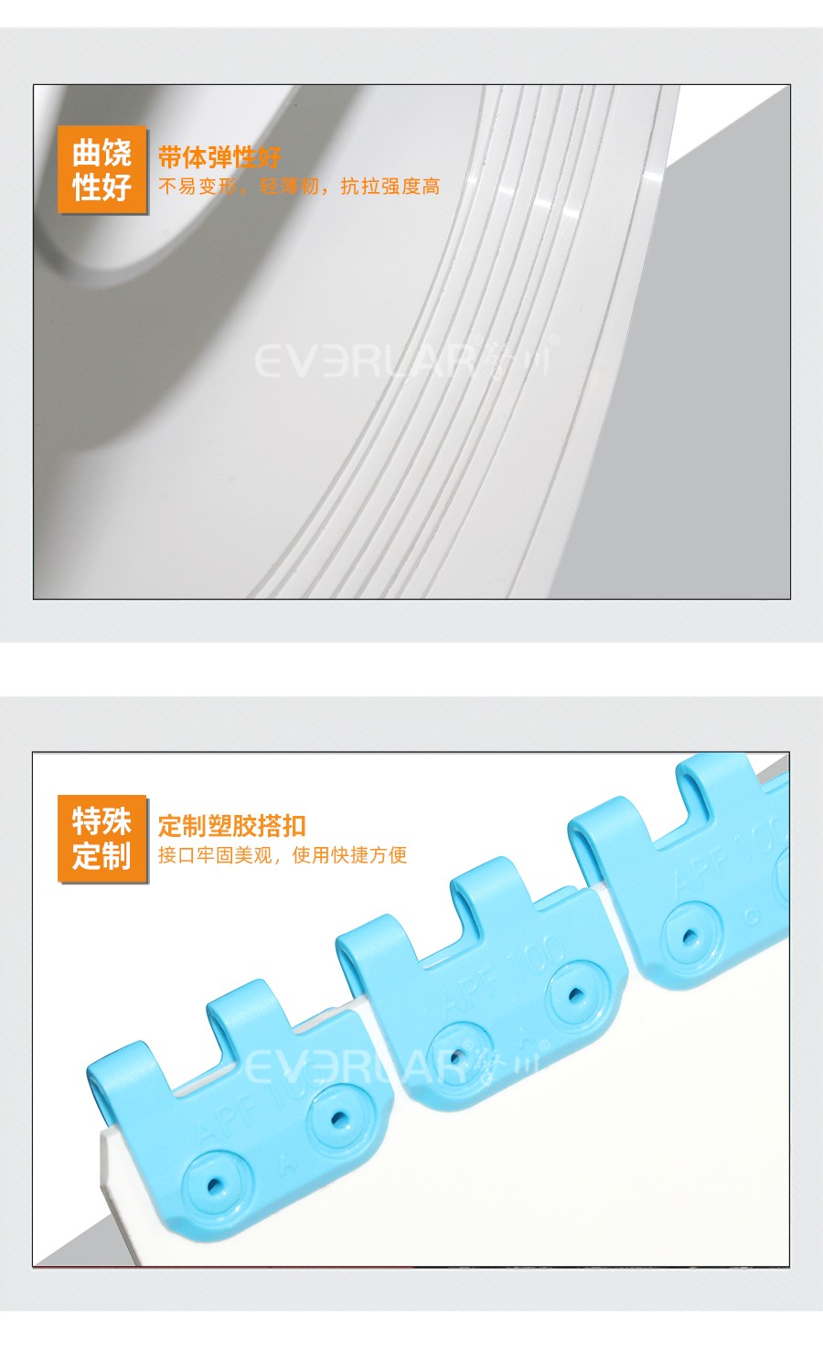 • 擎川everlar定制白色易潔帶加塑料接口食品輸送帶