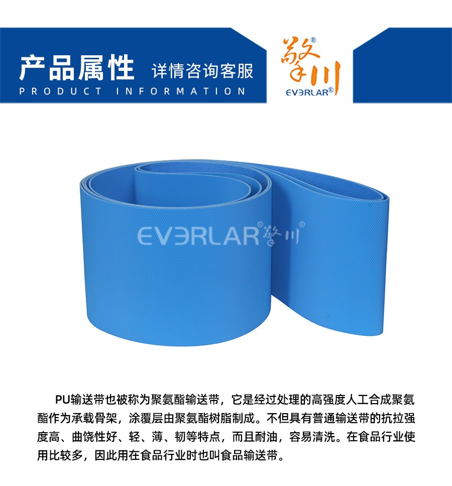 • 產品名稱:擎川everlar定制藍色鉆紋PU輸送帶食品輸送帶