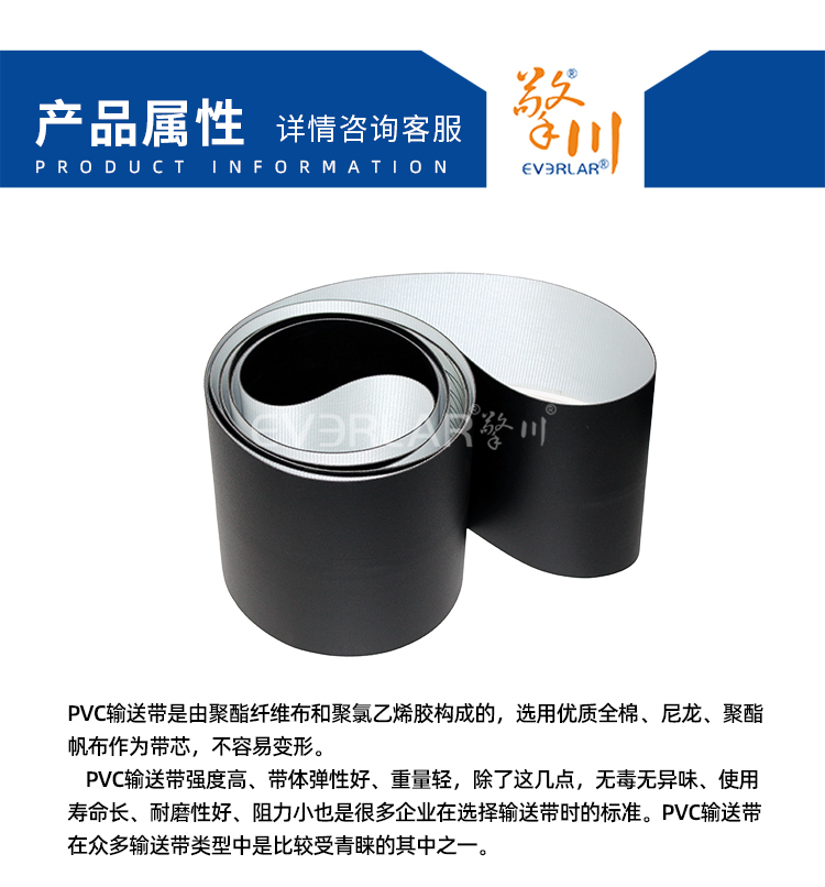 • 產品名稱:擎川everlar定制黑色加導條PVC輸送帶食品包裝機械設備