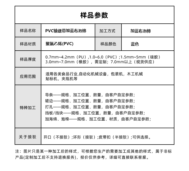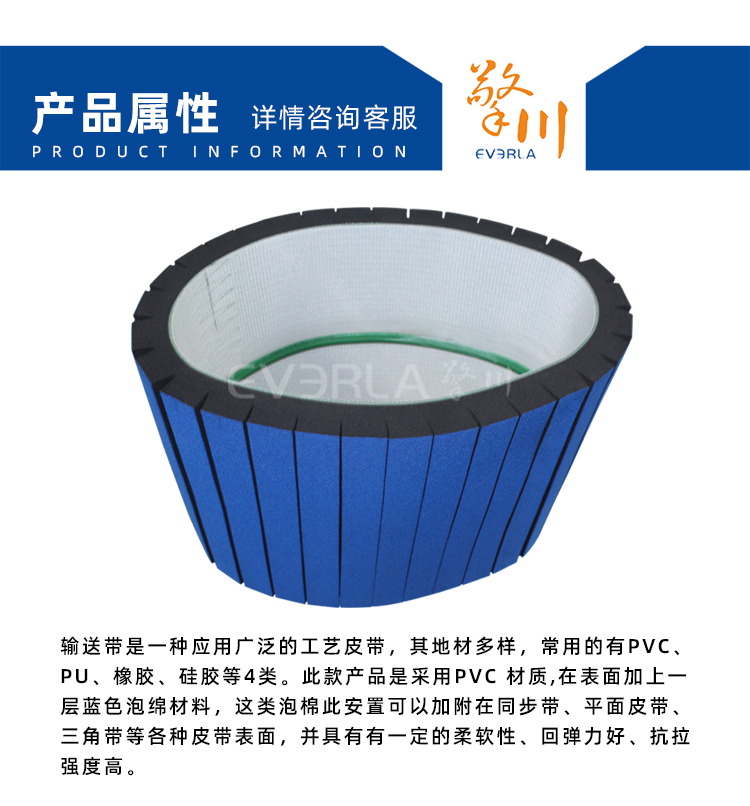 • 產品名稱:藍色加泡棉PVC輸送帶擎川工業皮帶定制