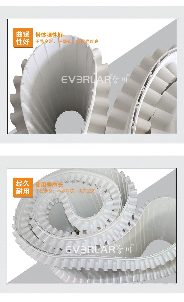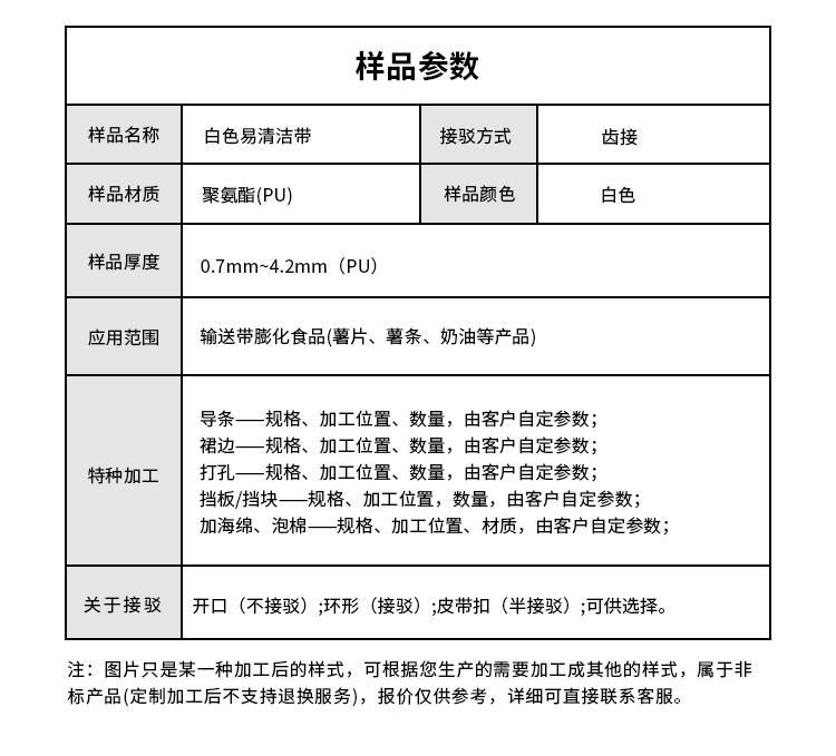 • 產品名稱:易清潔帶白色pu食品輸送帶易潔帶加導條加裙邊輸送帶