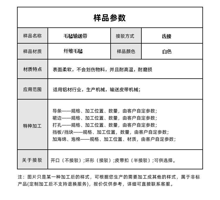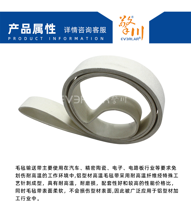 產(chǎn)品名稱:凱夫拉毛氈輸送帶耐磨耐高溫耐腐蝕工業(yè)皮帶定制