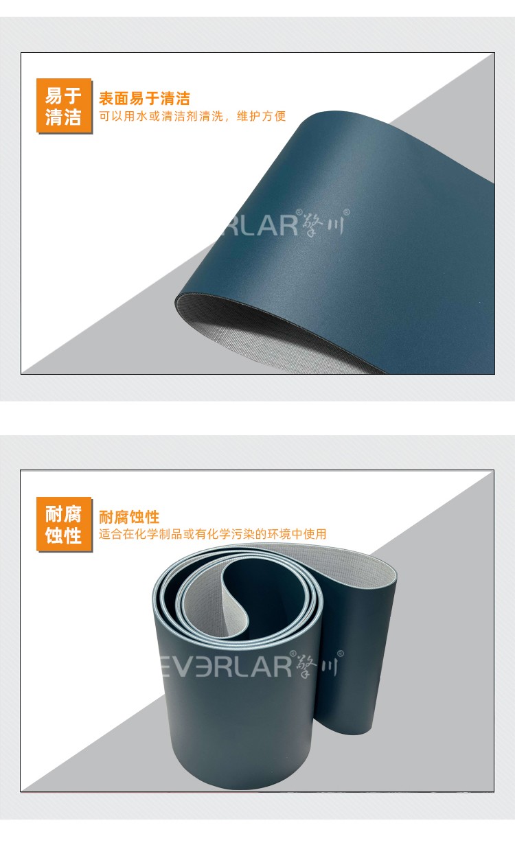 • 產品名稱:墨綠啞光PVC輸送帶耐腐蝕防滑易清潔工業皮帶定制