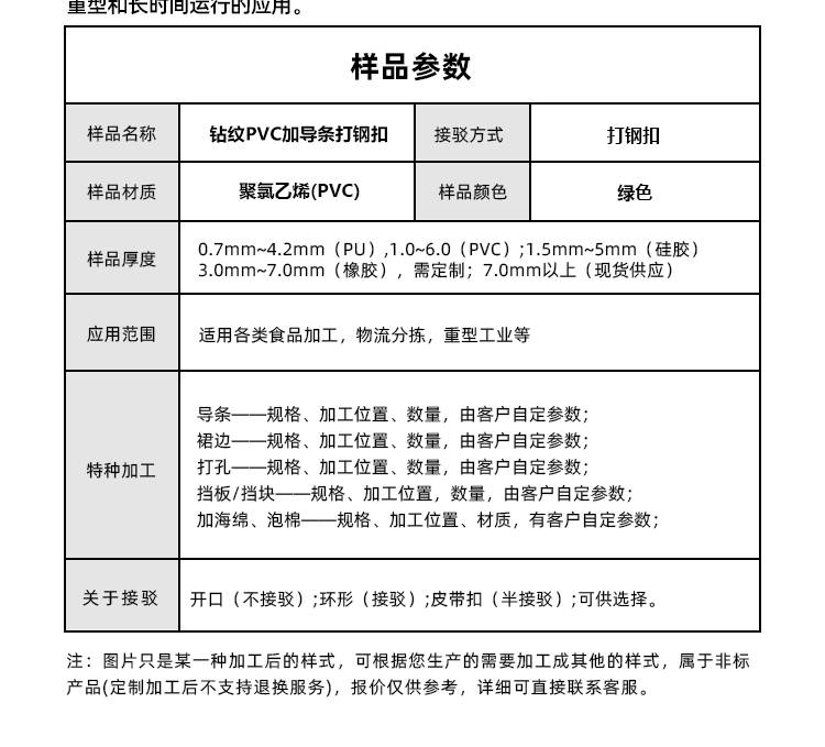 產(chǎn)品名稱:鉆石PVC加導(dǎo)條打鋼扣耐磨防靜電強(qiáng)度高工業(yè)皮帶