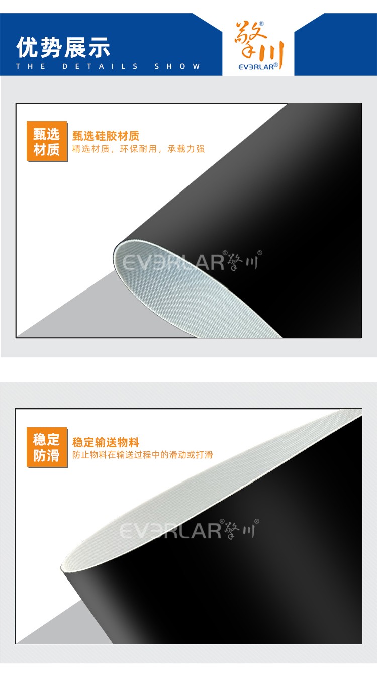 • 產品名稱:防靜電黑色硅膠輸送帶防粘耐高溫防靜電工業皮帶