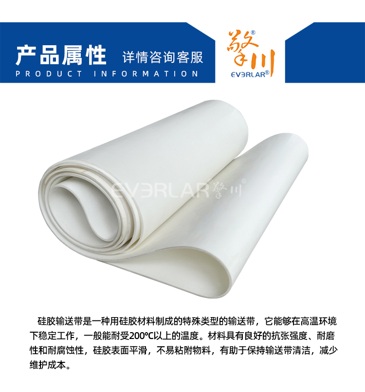 • 產品名稱:硅膠輸送帶耐磨耐腐蝕耐高溫工業皮帶