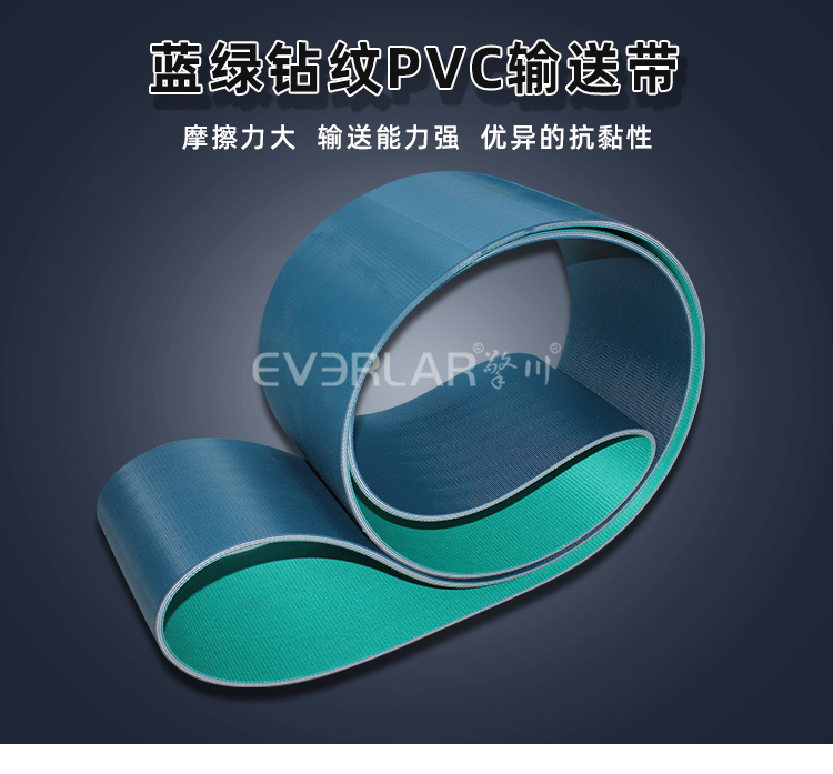 • 產(chǎn)品名稱:藍(lán)綠鉆紋PVC輸送帶耐溫防靜電易清潔工業(yè)皮帶