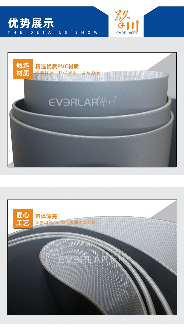 • 產品名稱:灰色PVC輸送帶耐磨平穩耐腐蝕包裝機械工業皮帶定制