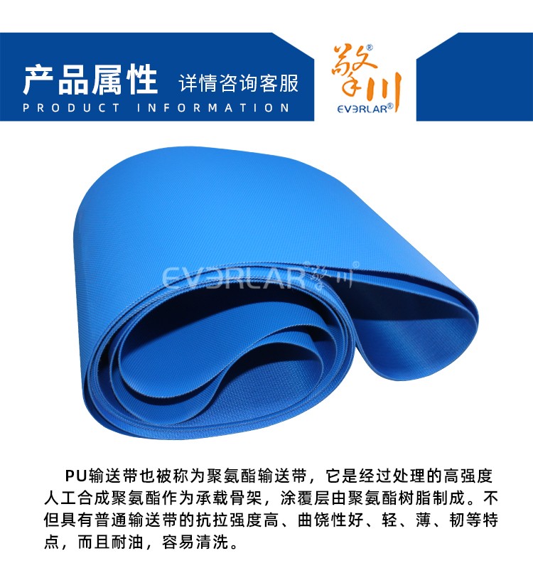 • 產品名稱:雙面藍色鉆紋PU輸送帶耐磨耐油食品級工業皮帶定制