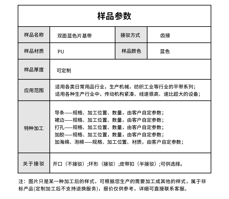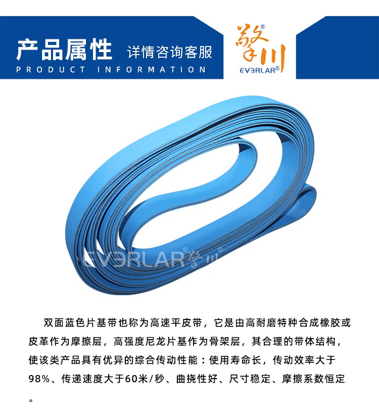 • 產品名稱:雙面藍色片基帶耐磨耐曲撓拉力強工業皮帶