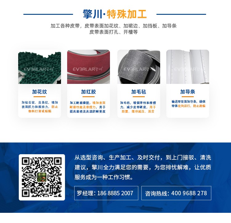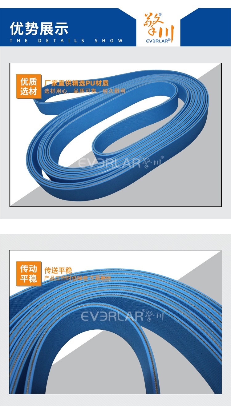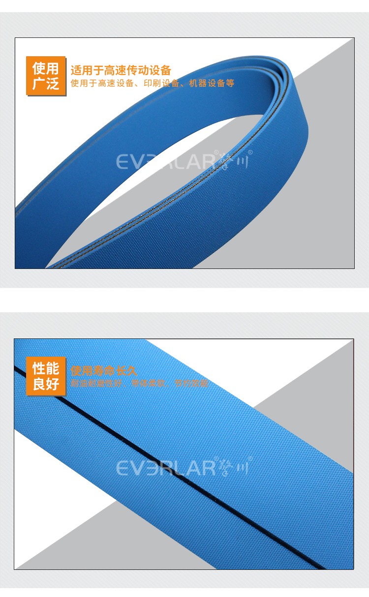 • 雙面藍色片基帶耐磨耐曲撓拉力強工業皮帶