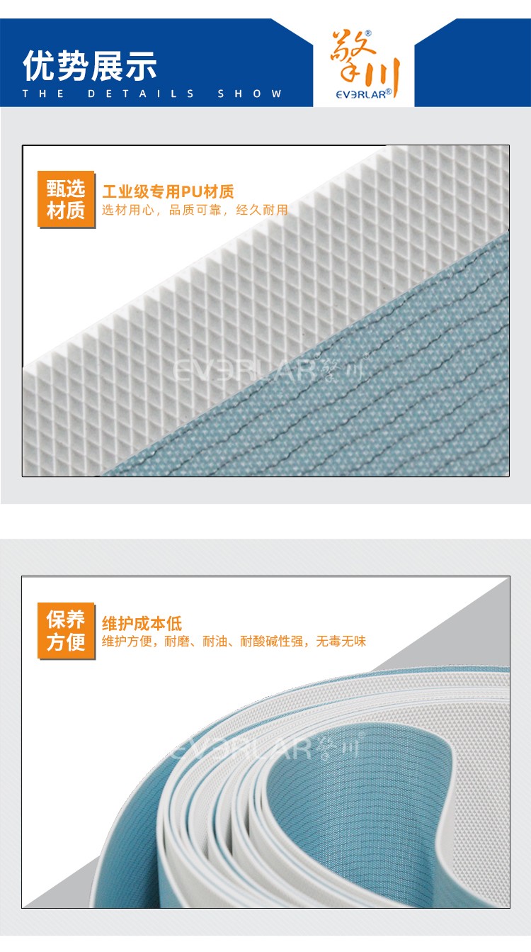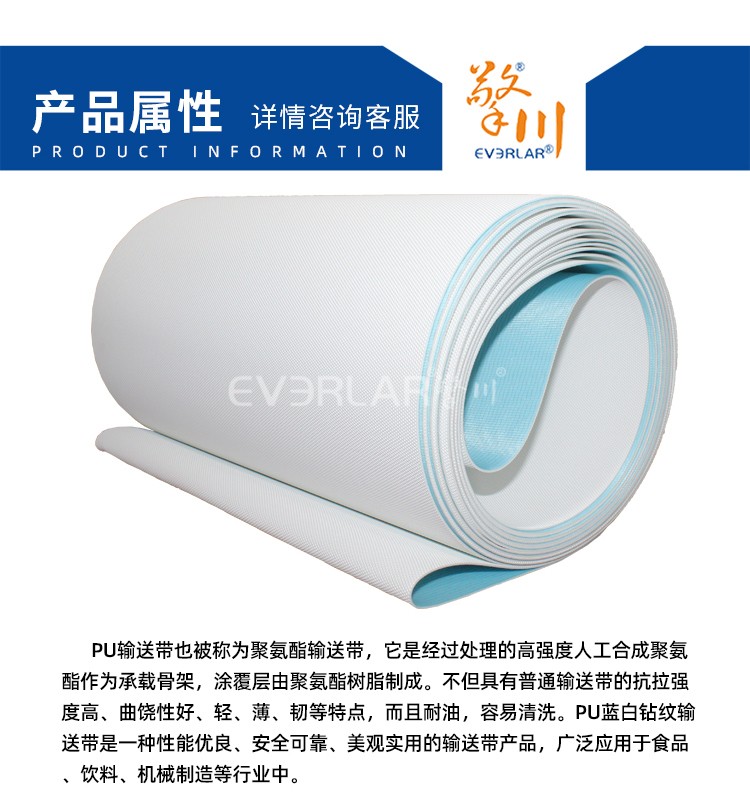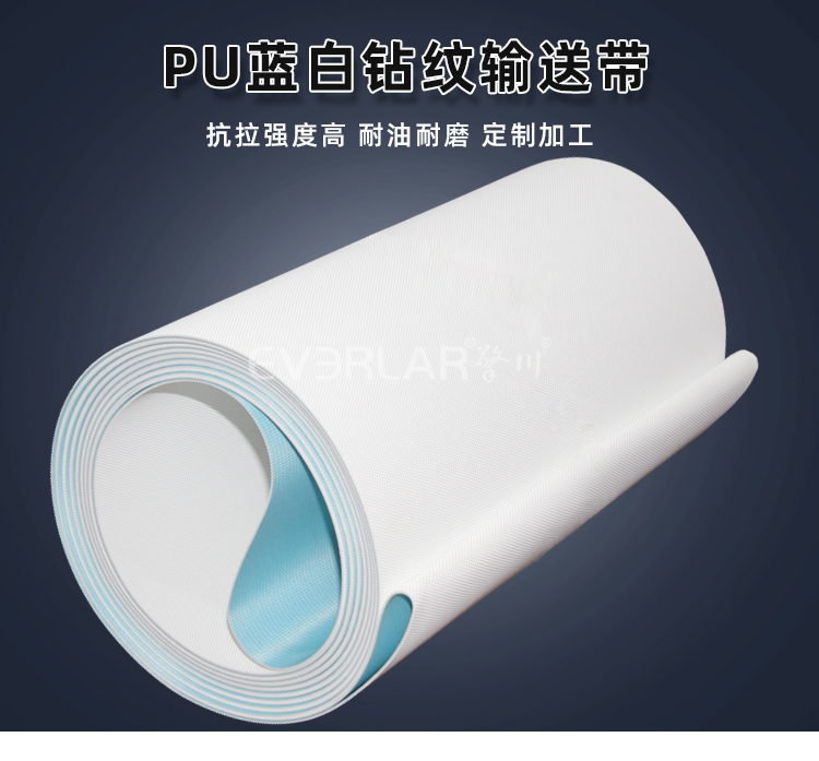 • 產品名稱:PU藍白鉆紋輸送帶耐磨耐油耐腐蝕工業皮帶定制