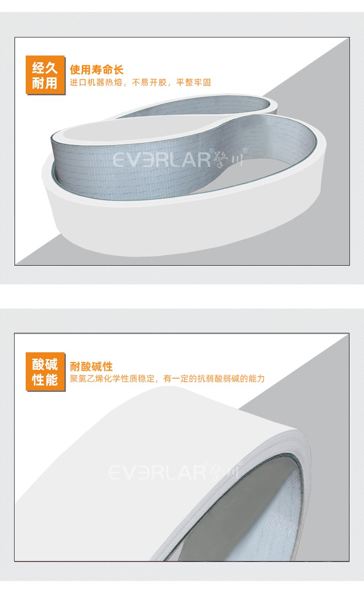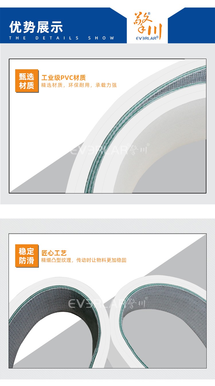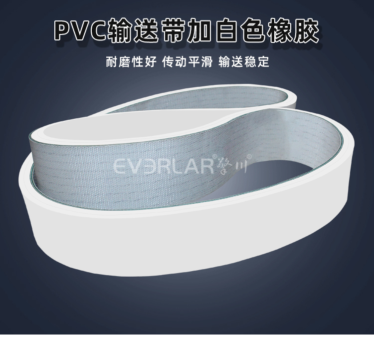 • 產品名稱:PVC輸送帶加白色橡膠耐磨耐腐蝕耐低溫工業皮帶定制