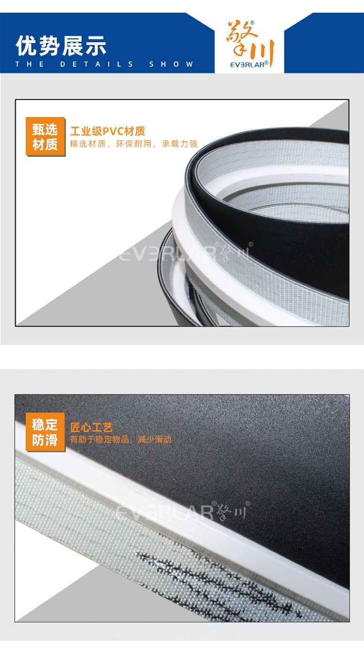 • 產品名稱:黑色PVC輸送帶加導條耐油耐腐蝕耐高溫工業皮帶定制