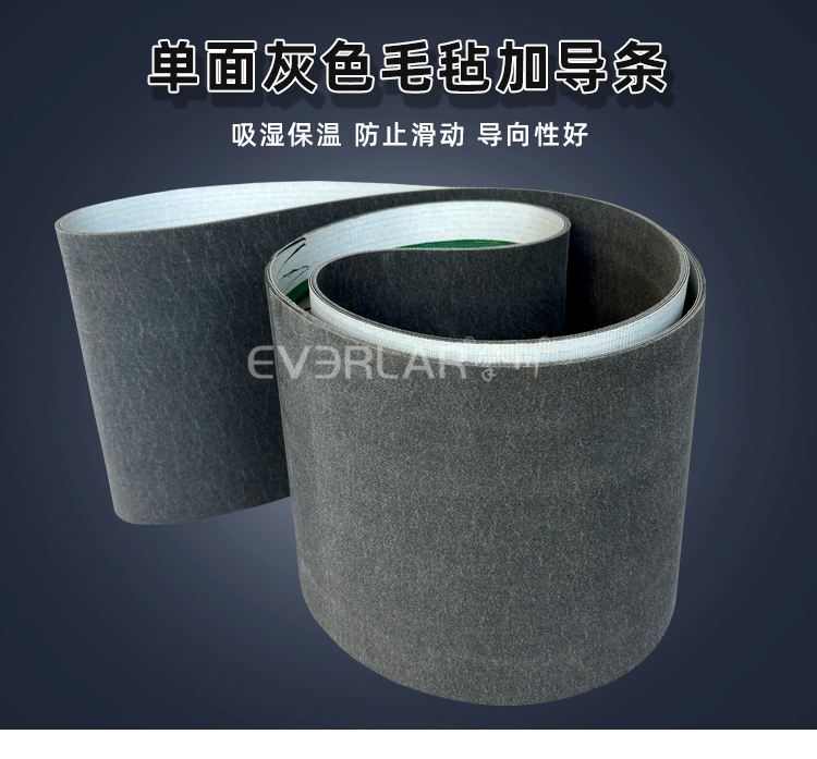 • 單面灰色毛氈加導條耐磨降噪平穩工業皮帶