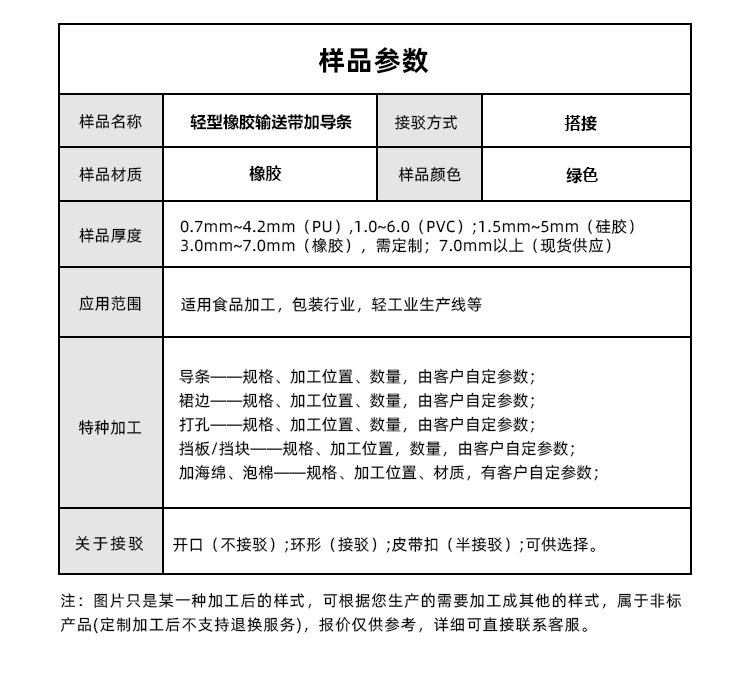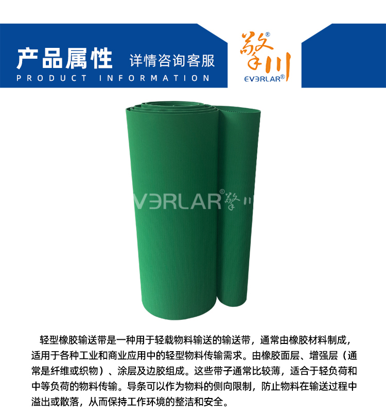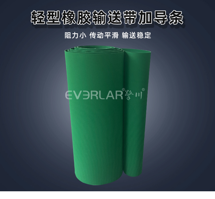 • 產(chǎn)品名稱:輕型橡膠輸送帶加導條耐磨平穩(wěn)抗拉強度工業(yè)皮帶