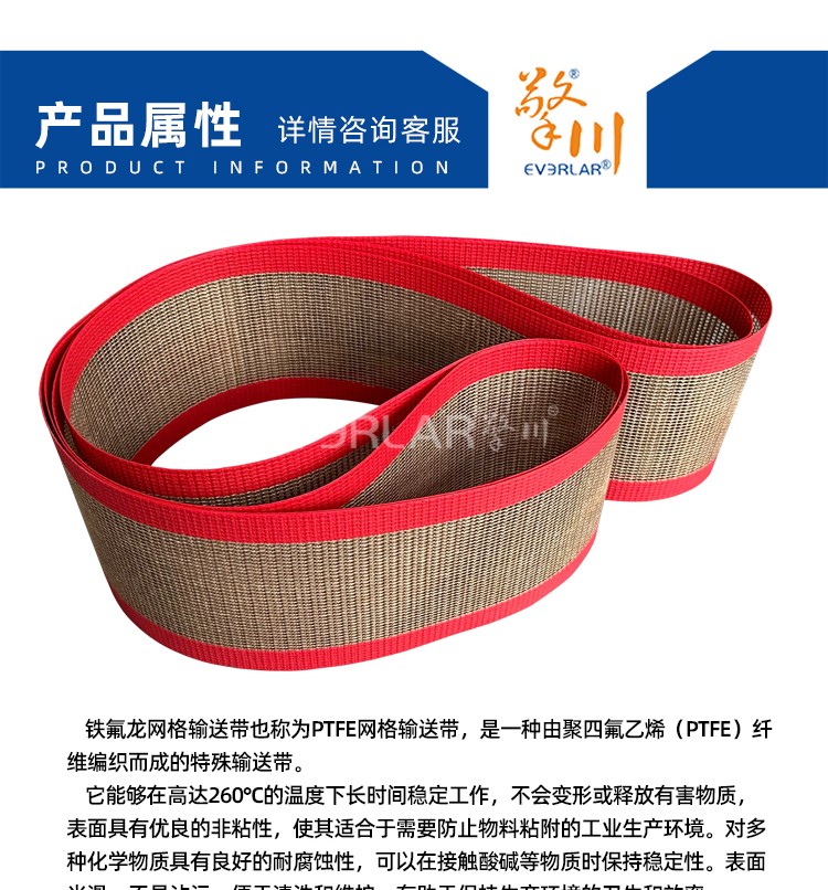 • 產品名稱:鐵氟龍網格輸送帶防火耐腐蝕耐高溫工業皮帶