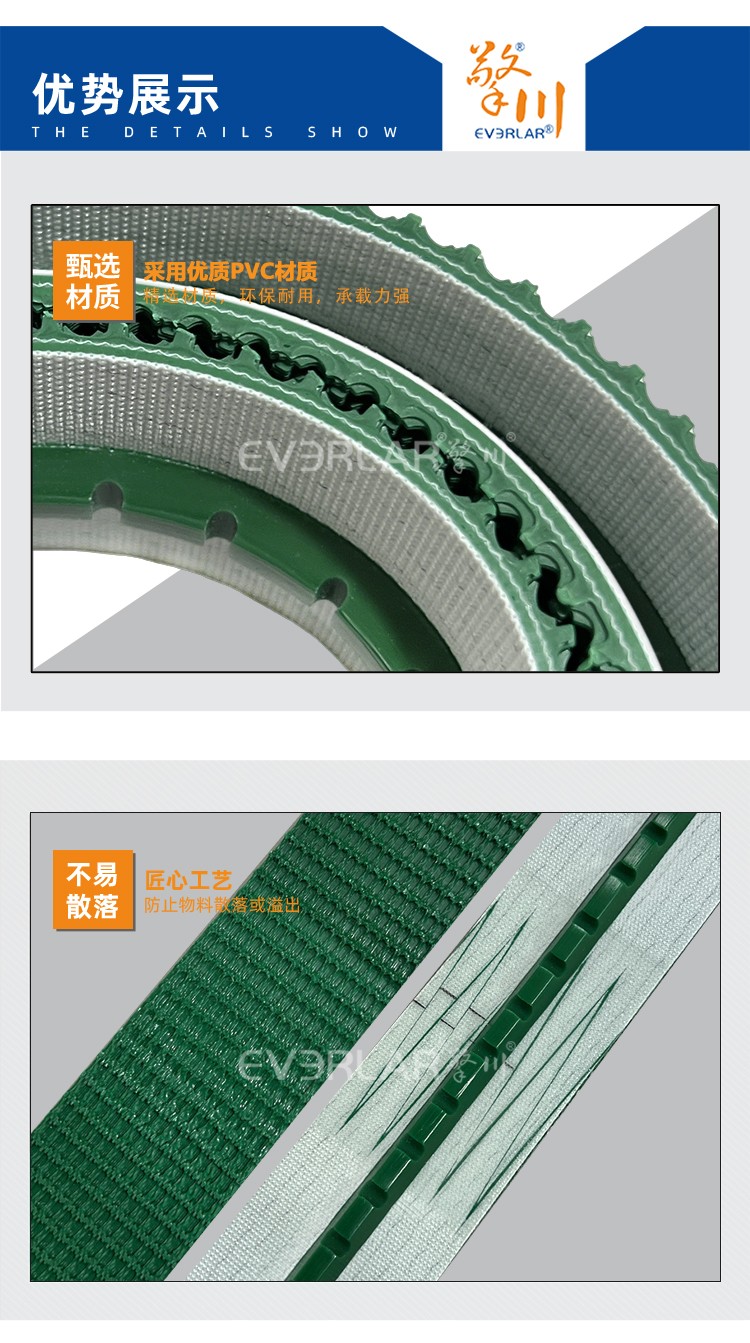 • 綠色PVC花紋帶加導條耐磨防滑物流行業快遞分揀機輸送帶擎川定制