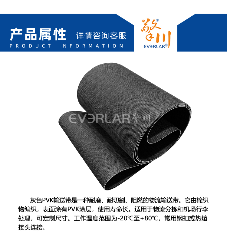 • 產品名稱:灰色PVK輸送帶耐磨抗撕裂物流分揀輸送機專用工業皮帶廠家定制
