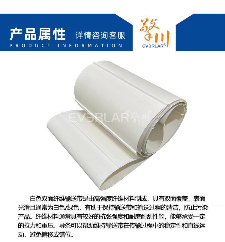 • 產(chǎn)品名稱:雙面纖維輸送帶加擋板耐磨防滑食品行業(yè)流水線提升機傳送帶擎川定制