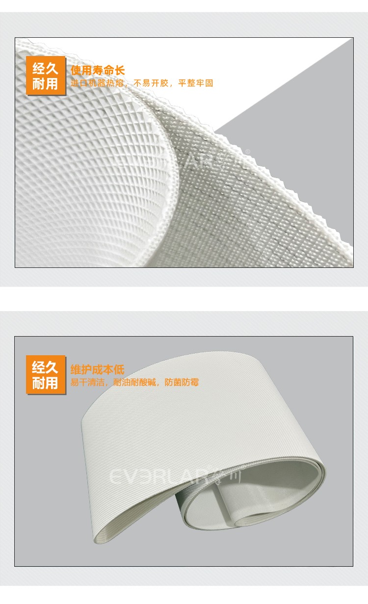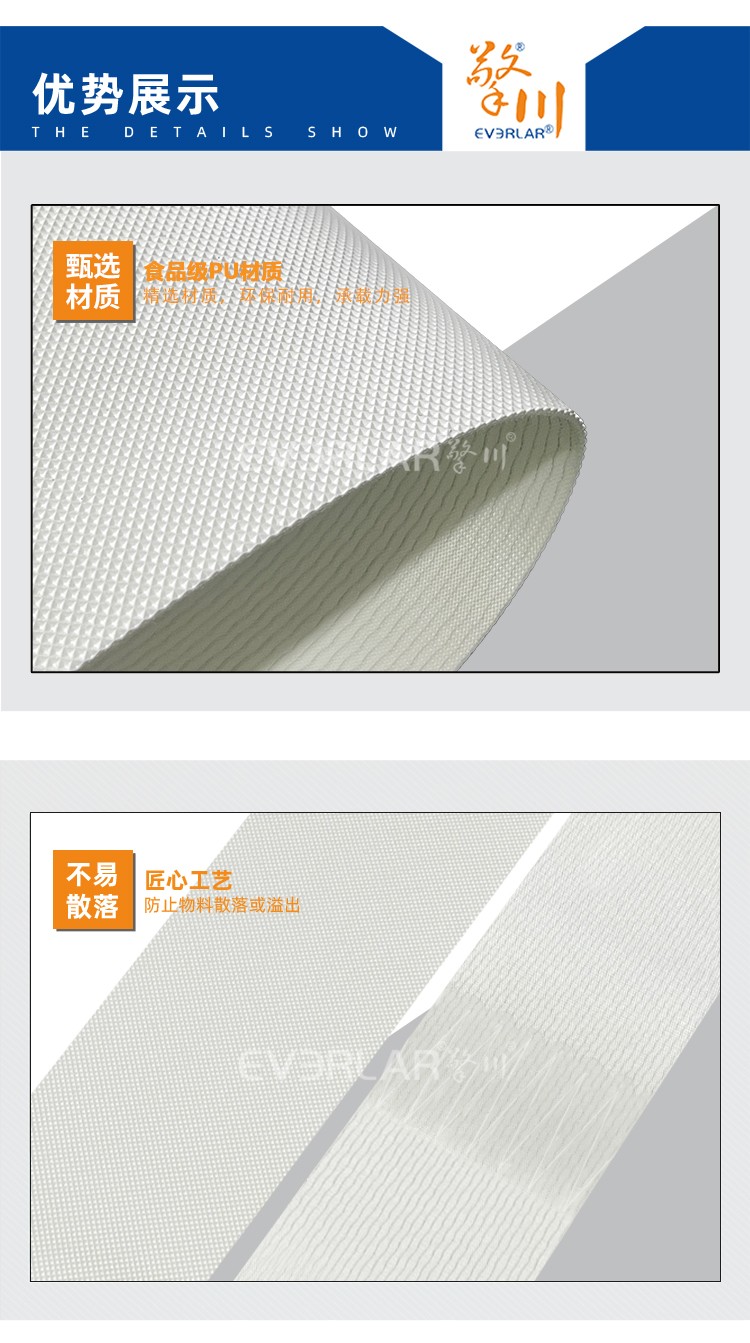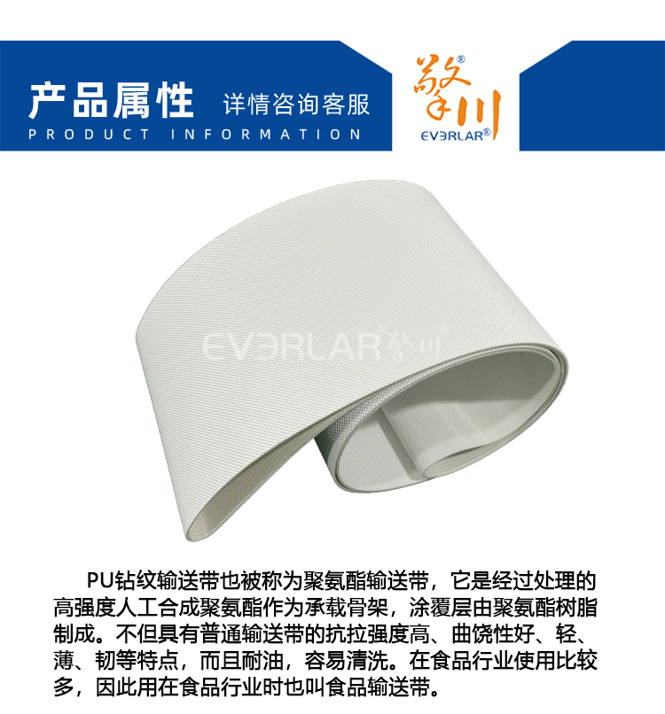 • 產(chǎn)品名稱:食品級白色PU鉆石紋輸送帶耐磨防滑適配餅干生產(chǎn)線包裝機(jī)皮帶