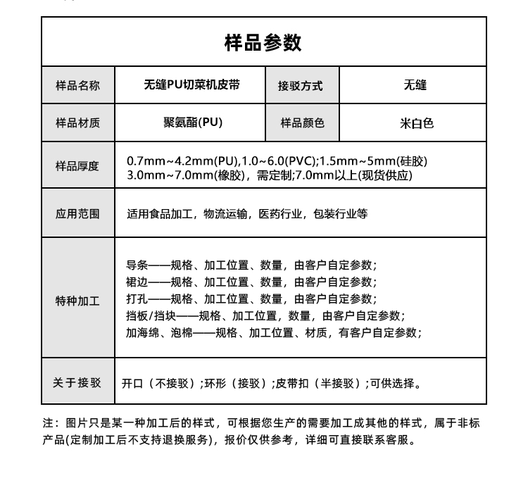 產(chǎn)品名稱(chēng):無(wú)縫PU切菜機(jī)皮帶抗撕裂防油污中央廚房全自動(dòng)切菜設(shè)備輸送帶