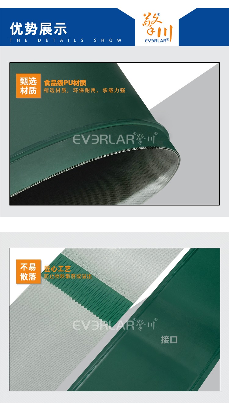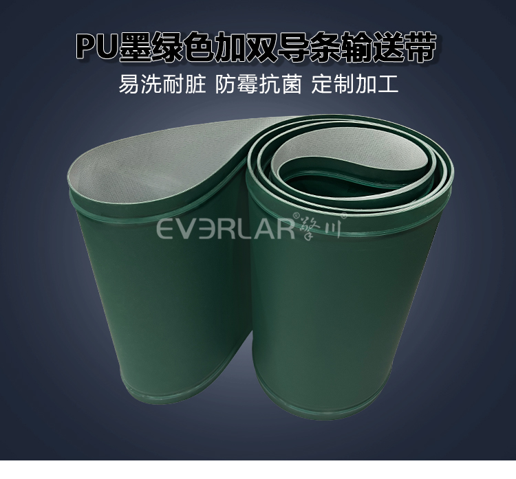 • 墨綠色PU輸送帶加雙導條耐磨抗撕裂食品電子物流分揀機皮帶擎川定制