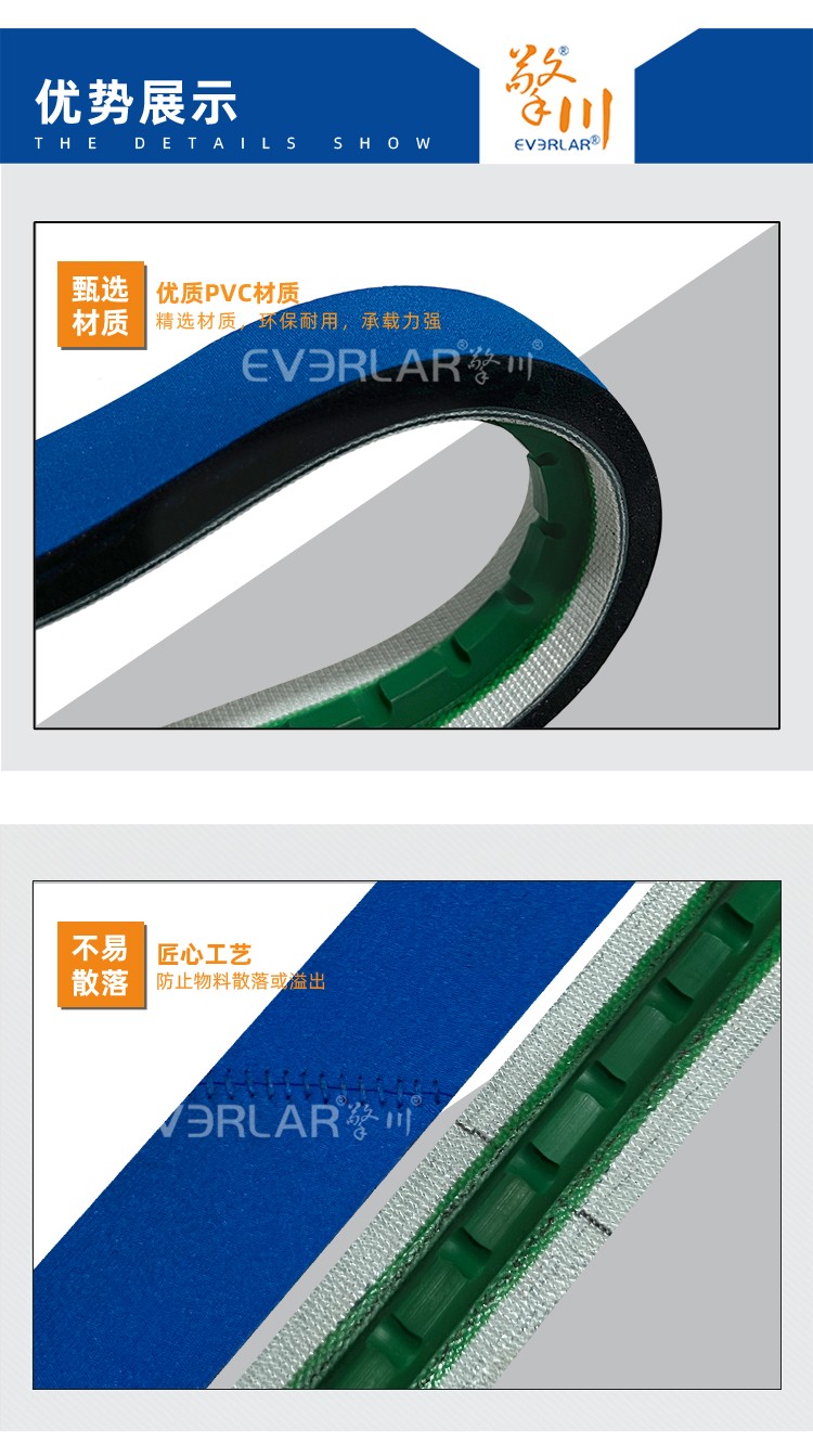 易清潔TPU加擋板輸送帶藍(lán)色食品級防溢抗污生產(chǎn)線設(shè)備傳送帶