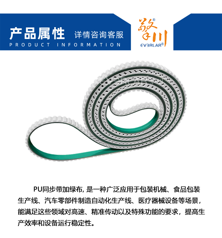 產(chǎn)品名稱:PU同步帶加綠布耐磨耐油食品包裝自動(dòng)化生產(chǎn)線聚氨酯皮帶加工