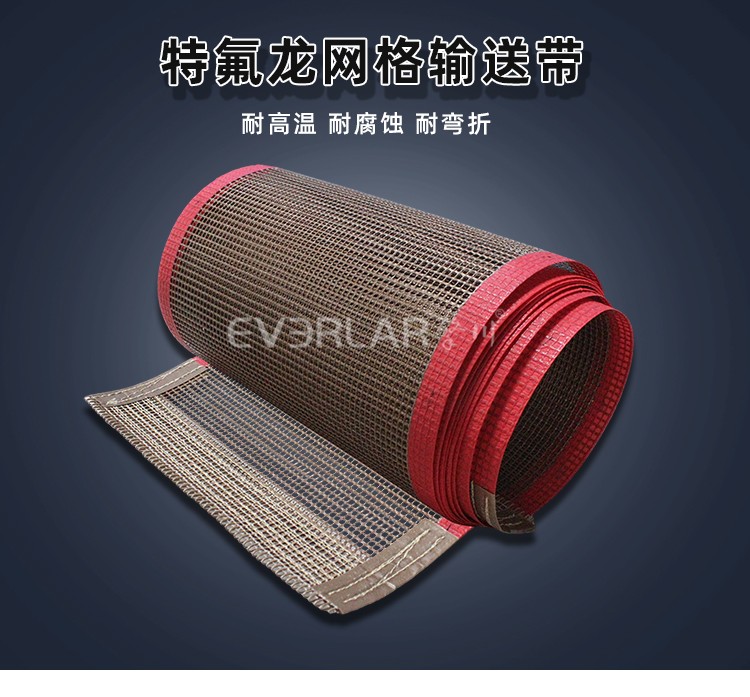 為食品、醫藥、包裝、日化提供一站式特殊定制耐高溫輸送帶:鐵氟龍網格輸送帶,防粘耐腐性能優