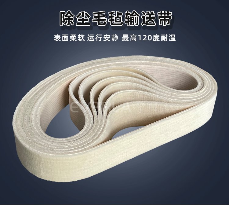 玻璃生產連續輸送中,毛氈輸送帶的防靜電功能保障安全,柔軟材質減少損傷,高摩擦系數防止滑動。齒接環形設計確保運行平穩,白色外觀便于清潔。毛氈輸送帶通過這些特性結合,在玻璃生產輸送中穩定發揮作用,為易碎物料安全輸送提供適配支持。